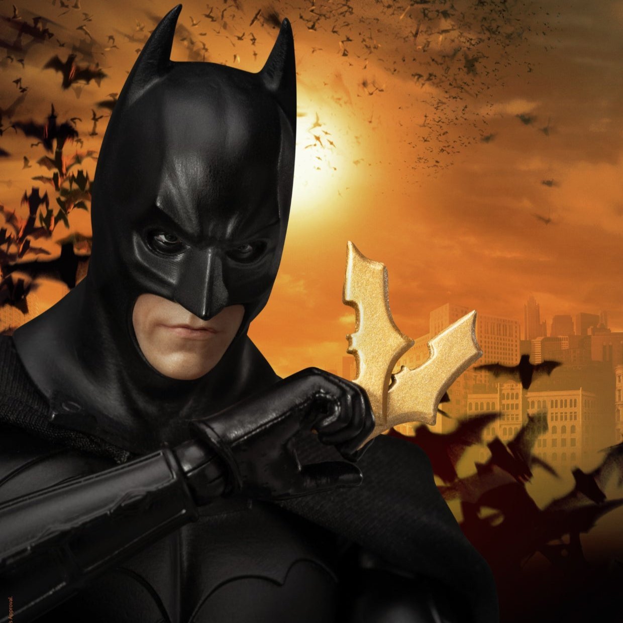 - This figure is crafted with a meticulously sculpted head based on actor Christian Bale's likeness, and it faithfully recreates the first Batsuit, originally designed as military armor in the film.