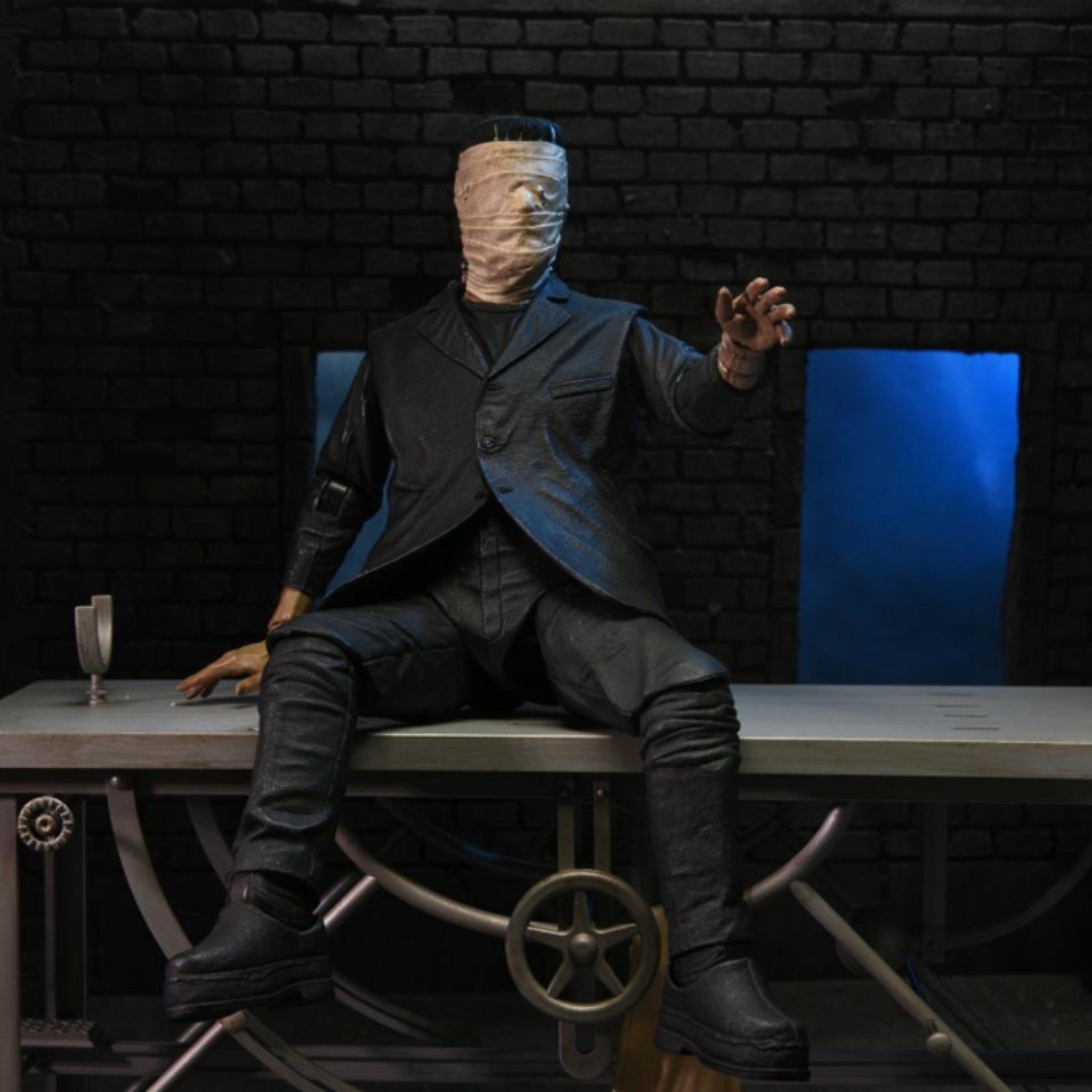- Accurate to the movie, the centerpiece of the set is the massive laboratory table, which measures over 9.5” inches long and over 6” wide and fits the NECA action figure (sold separately).