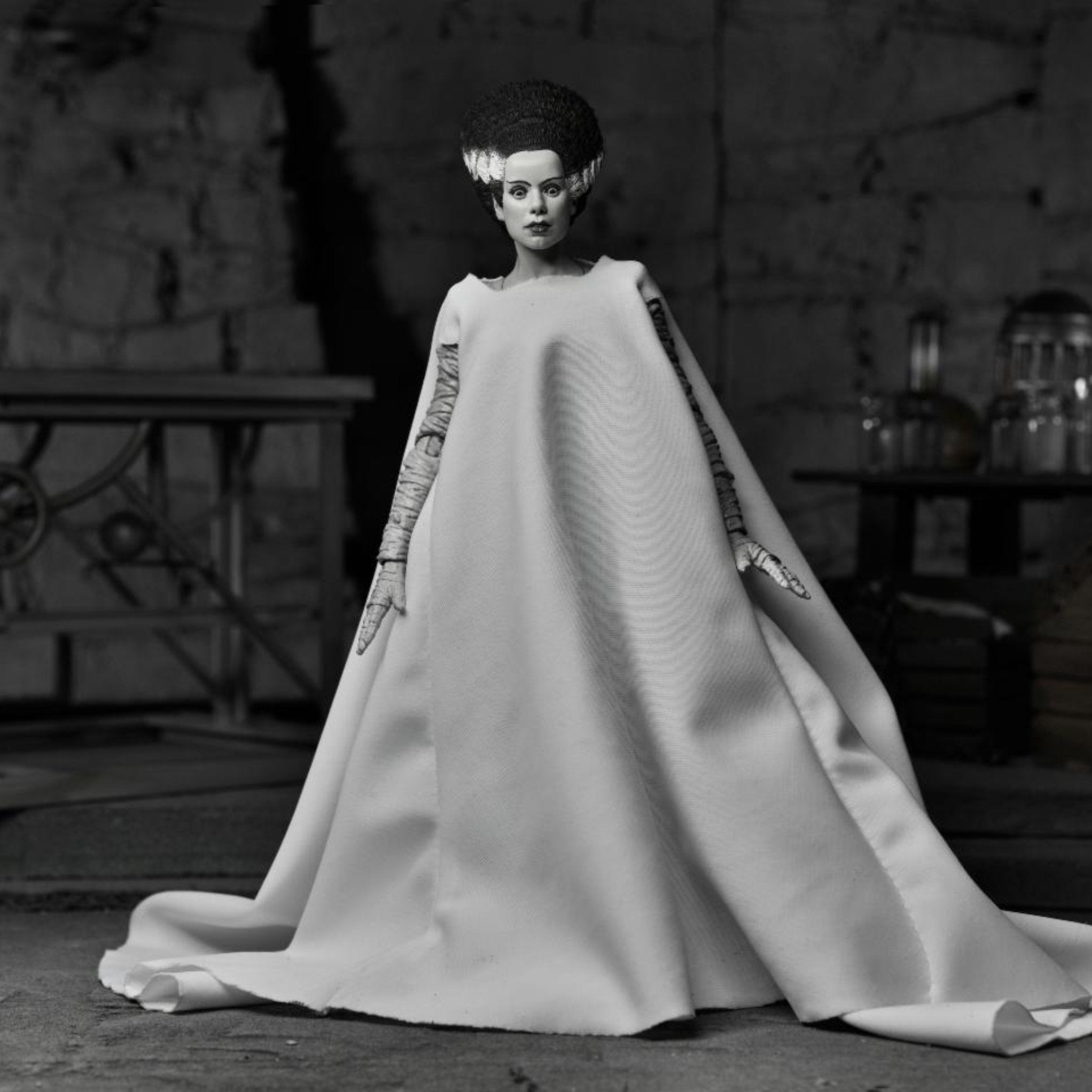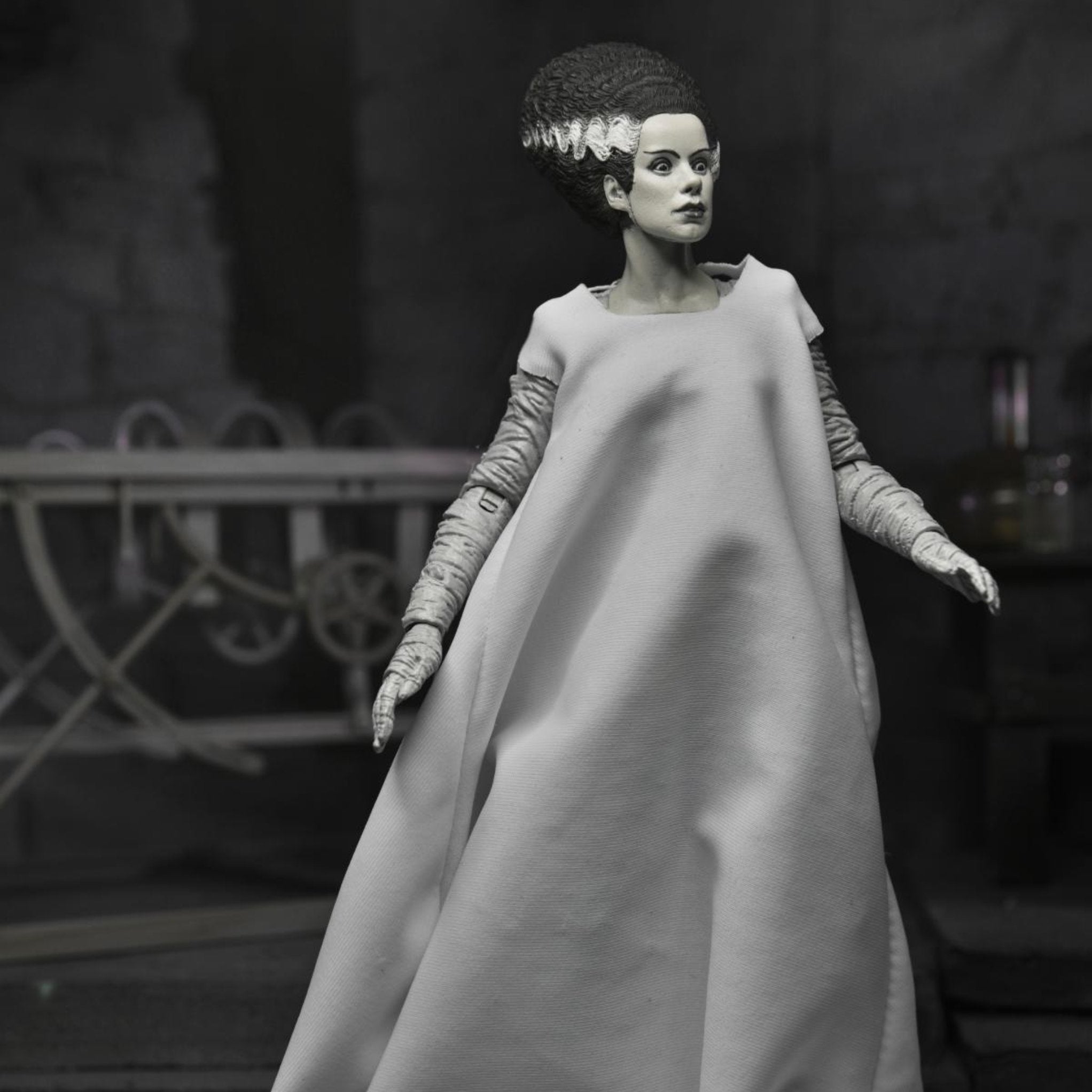 Elsa Lanchester’s portrayal of the creature stitched together to be the monster’s mate is captured in this detailed 7” scale Ultimate action figure.