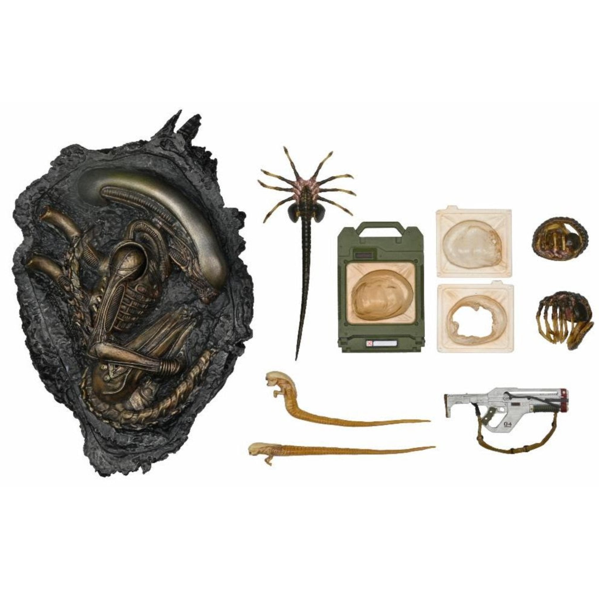 - Also includes a cryo frame case with facehugger and interchangeable damaged plastic parts, and a facehugger that can go around the heads of most NECA 7-inch scale action figures (not included)!